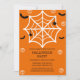 Creep it real with this spooky-cute Halloween party invitation! Designed with a large spider web stretching across the top center, two dangling spiders make their grand entrance while playful bats flutter nearby. Scattered throughout are adorable skull faces that bring just the right mix of creepy and cute. This invitation is perfect for a Halloween celebration that's festive, fun, and a little eerie.