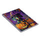 Embrace the Halloween spirit with this enchanting design featuring a cute dog in a witch hat surrounded by carved pumpkins. Perfect for adding a touch of spooky charm to your festive celebrations.