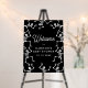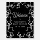 Welcome guests in spooky style with this Halloween-themed baby shower welcome sign featuring bold white “Welcome” script with the mother-to-be’s name and shower date displayed below. Surrounded by playful dancing skeletons on a black background, this sign sets the tone for a festive gothic or Halloween-inspired celebration. Perfect for displaying at the entry of your venue, it pairs seamlessly with matching skeleton-themed baby shower décor to create a memorable first impression.