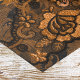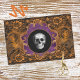 This spooky but elegant design features a scary skull, encircled in black and surrounded with a purple and orange frame. Lacy orange and black damask roses, leaves, and lacey frills adorn the background. The overlook is fancy but definitely strikes a Goth or Haloween vibe.