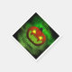 A spooky orange jack o' lantern with glowing yellow eyes in a laughs evilly in a billowing green mist on Halloween.