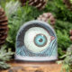 This spooky snow globe features a comic-like illustration of a scary blue eyeball. This is a great ornament for those who love Halloween vibes, horror movies, and zombie movies.
