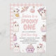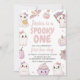 Celebrate your baby’s first birthday with this adorable spooky-themed invitation featuring cute pastel ghosts, pumpkins, bats, and cobwebs. Perfect for a Halloween boo-day party, this customizable design adds a fun and whimsical touch to your little one’s milestone celebration. Personalize with your child’s name, party details, and make your event unforgettable.