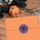 Spooky purple Halloween envelope seals featuring three flying bats . Personalize them with your family's name and address using the appropriate template fields .