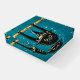 Celebrate spooky season with a flying black cat in a witch hat soaring across the night sky.