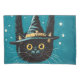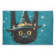 Celebrate spooky season with a flying black cat in a witch hat soaring across the night sky.