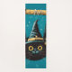 Celebrate spooky season with a flying black cat in a witch hat soaring across the night sky.