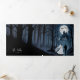 This enclosure details card completes your wedding stationery suite with a design inspired by the magic, mystery, and charm of Halloween. The scene shows the couple walking toward a haunted castle, surrounded by a dark and enchanting forest, capturing a gothic, romantic, and sophisticated style that combines elegance and emotion in every detail. The carefully balanced composition blends shadows, light, and subtle floral elements, creating a unique atmosphere that highlights the beauty and fantasy of your themed wedding.
