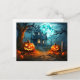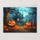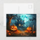 This super spooky Halloween postcard features a haunted house and some nefarious glowing pumpkins, in the moonlight.