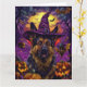 Spooky German Shepherd Halloween Witch Pumpkin Card