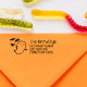 Cute and spooky Halloween themed return address rubber stamp with your name in a spooky font next to a cute ghost and three bats.