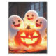 A charming ghost family, smiling and playing joyfully around a glowing pumpkin. A warm a whimsical Halloween-inspired atmosphere with soft colors.