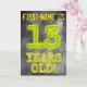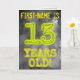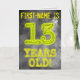 The front of this eerie looking, customizable birthday card design features the message "13 YEARS OLD!" with characters and digits having a spooky glowing aura inspired look, on a mysterious grey cloudy mist-inspired background pattern. The front also features a personalized recipient name. The inside features a birthday greeting message that can be personalized. A customized birthday greeting card like this might be a special way to send a birthday greeting message to somebody celebrating their thirteenth birthday. [~Z0000365]