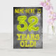 The front of this eerie looking, editable birthday card design features the message "32 YEARS OLD!" with characters and digits having a mysterious glowing aura inspired look, on a spooky grey cloudy mist-inspired background pattern. The front also features a customizable recipient name. The inside features a birthday greeting message that can be edited. A customized birthday greeting card like this might be used to send a birthday greeting message to somebody who is celebrating their 32nd birthday. [~Z0000365]