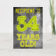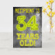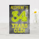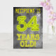 The front of this mysterious looking, personalized birthday card design features the message "34 YEARS OLD!" with characters and digits having a spooky glowing aura inspired look, on an eerie gray cloudy mist-inspired background pattern. The front also features an editable recipient name. The inside features a customized birthday greeting message. A customizable birthday greeting card like this might be a special way to send a birthday message to somebody who is celebrating their 34th birthday. [~Z0000365]