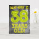 The front of this eerie looking, personalized birthday card design features the message "38 YEARS OLD!" with characters and digits having a mysterious glowing aura inspired appearance, on a spooky gray cloudy mist-inspired background pattern. The front also features a personalized recipient name. The inside features an editable birthday greeting message. A personalized birthday greeting card like this might be a special way to send a birthday greeting to somebody who is celebrating their 38th birthday. [~Z0000365]