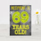 The front of this spooky looking, editable birthday card design features the message "69 YEARS OLD!" with characters and digits having a mysterious glowing aura inspired appearance, on an eerie gray cloudy mist-inspired background pattern. The front also features a customizable recipient name. The inside features a customizable birthday greeting message. A customizable birthday greeting card like this might be a special way to send a birthday message to somebody who is celebrating their 69th birthday. [~Z0000365]