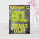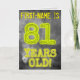 The front of this mysterious looking, customizable birthday card design features the message "81 YEARS OLD!" with characters and digits having a spooky glowing aura inspired appearance, on an eerie gray cloudy mist-inspired background pattern. The front also features an editable recipient name. The inside features an editable birthday greeting message. A customizable birthday greeting card like this might be a special way to send a birthday message to somebody who is celebrating their 81st birthday. [~Z0000365]