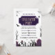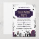 You're invited to a hauntingly good time this Halloween! This spooky and stylish invitation sets the perfect scene for a classic Halloween bash. The design features a creepy graveyard silhouette at dusk, complete with a scarecrow, tombstones, gnarled trees, and bats in flight. Accented with spiders and elegant typography in a purple and black color scheme, this invitation is perfect for a memorable monster mash. All the party details are fully customizable to summon your guests!