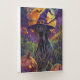 Embrace the Halloween spirit with this enchanting design featuring a cute dog in a witch hat surrounded by carved pumpkins. Perfect for adding a touch of spooky charm to your festive celebrations.