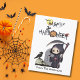 Get ready for a spook-tacular Halloween party with this playful watercolor invitation! The design features a playful Grim Reaper walking through a creepy cemetery, his sickle in hand, while a black crow perches atop a skull. “Happy Halloween” pops in festive style with a Jack-o-Lantern pumpkin, a witch hat, spiderwebs, a bright yellow full moon with a fluttering bat, and a scary ghost, the perfect mix of fun and spine-chilling charm.