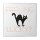 Spooky Halloween Black Cat Feeling Lucky? Ceramic Tile