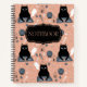 Unleash your love for all things spooky and feline with this enchanting spiral notebook, featuring a playful yet eerie pattern of illustrated cats immersed in supernatural mischief. From curious kitties playing with Ouija boards to ghostly feline apparitions, runes, and crystal balls, every detail of this design oozes charm and mystique. Among the quirky illustrations, you’ll also find subtle hints of creepiness, like scattered fish bones and mystical symbols, creating a perfect balance of whimsy and the macabre. At the center of the cover, the word “Notebook” is displayed in bold, making it clear that this is the ideal canvas for all your thoughts, plans, and creative ideas.