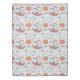 This design is a Halloween-themed pattern with a whimsical and playful design. The background color is a soft pastel blue, and it is filled with various Halloween icons and symbols.