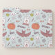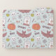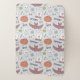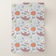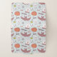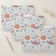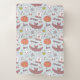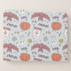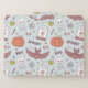 This design is a Halloween-themed pattern with a whimsical and playful design. The background color is a soft pastel blue, and it is filled with various Halloween icons and symbols.
