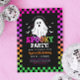 🖤👻🩷Invite your ghouls and ghosts in style with this Neon Ghost Halloween Birthday Invitation! Bursting with retro spooky charm, this design features a rainbow checkered border, a groovy ghost, and creepy-cute bats that set the perfect party mood. With its mix of rainbow colors — from preppy pink to eerie green — this printable is perfect for a frightfully fun birthday bash. Order prints or share digitally for a hauntingly good time!