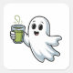 Spooky Halloween Ghost Holding Matcha Square Sticker