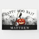 This spooky Halloween birthday banner is perfect for a Halloween birthday party. These banner for Halloween birthday feature a black splotched ink background with a fiery jack o'lantern, human skull, black crow, and a witches broom. Text says "Happy Boo Day." Personalize with the name of your choice.