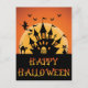 Spooky Halloween Haunted House Cat Witch Bat Postcard