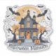 This is a cute halloween sticker that features a spooky Halloween mansion surrounded by bats and ghosts. You can customize the default text "Halloween Mansion".