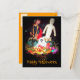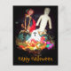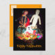 This spooky postcard features a fun Halloween design of Mummy, ghost, and trick or treat candy. A postcard-like this one would be good to send to your grandkids to with them a Happy Halloween.