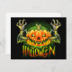 Spooky Halloween Neon Bat Pumpkin Postcard