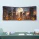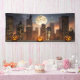 Spooky Halloween Night Cityscape with Pumpkin Banner