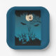 Spooky Halloween Night Full Moon and Flying Bats Paper Plates