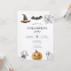 A customizable Halloween party invitation featuring classic spooky elements like pumpkins, bats, spiders, ghosts, and witches’ hats. Perfect for inviting friends and family to your festive celebration.