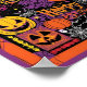A vibrant and intricate illustration of Halloween patterns, featuring a variety of iconic symbols such as jack-o-lanterns, bats, spiders, and cobwebs, set against a warm and eerie orange and purple background, with bold lines, geometric shapes, and stylized fonts, incorporating shades of black, yellow, and red to create a festive and spooky atmosphere, with intricate details and textures that evoke the spirit of the Halloween season.