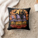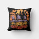 Spooky Halloween scarecrows under a full moon Throw Pillow
