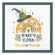 Cool Halloween pattern with pumpkins, rainbow, butterflies, and spiders. Trendy modern design.