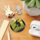 Carry a little bit of dark magic with you wherever you go with this awesome keychain featuring a dramatic black silhouette of a witch flying across a vibrant green, moonlit sky. This compact accessory is perfect for keeping your keys organized or decorating a backpack or purse. The eerie, mystical design showcases the classic image of a sorceress on her broom, making it an excellent small gift for Halloween lovers, gothic enthusiasts, or anyone who enjoys spooky, high-contrast vector art. It is a durable and eye-catching way to celebrate the creepy season year-round.