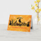 Cute creative happy Halloween concept design where letters are made of halloween symbols. Spooky trees, witches, black crow, flying bats, etc. Yellow orange texture with customizable and optional text.