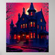 Spooky Haunted House at Dusk Design Poster