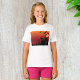 Let your child embrace the Halloween spirit with this spooky haunted house girls’ T-shirt. Featuring a mysterious silhouette of a haunted mansion, glowing windows, a full moon, flying bats, and a creepy graveyard, this design is perfect for kids who love all things eerie and fun. The bold orange and black color scheme adds a festive touch, making it ideal for Halloween parties, trick-or-treating, school events, or casual autumn wear.