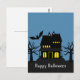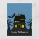 Frightfully fun Spooky Haunted House Halloween Postcard featuring a haunted house nestled in between two old and wizened trees and a lone bat flying in the foreground. This cool postcard is a great choice for wishing a friend or family member a Happy Halloween! So easy to customize, simply add the personalized text of your choosing. Click on the "Customize It" button for more personalization options.