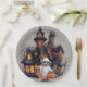Large Party Halloween Paper Plates Of A Spooky Haunted House And Pumpkin Ghost.