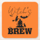 Spooky Haunted House & Witch Silhouette | Square Paper Coaster