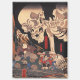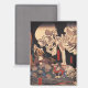 Bring some spooky fun to your kitchen with this spooky skeleton magnet! This is part of a famous Japanese artwork called The Haunted Palace at Soma (相馬の古内裏) created by Utagawa Kuniyoshi circa 1845, and features a giant skeleton yokai frightening some of the Emperor's men.